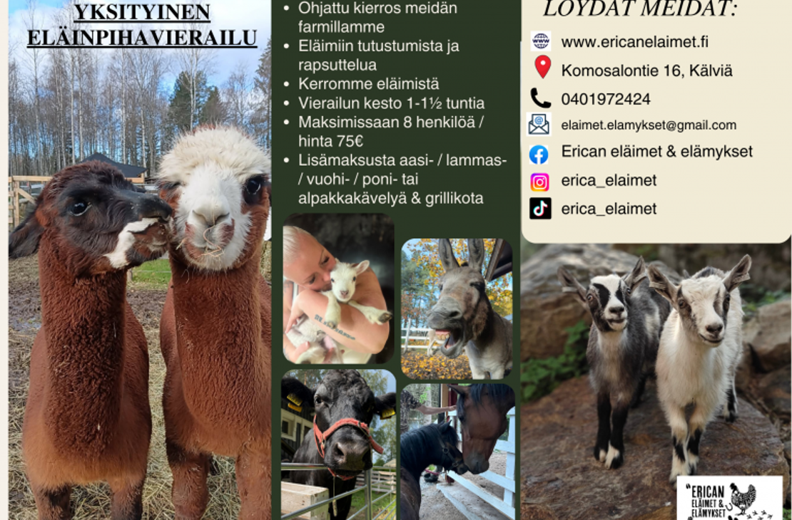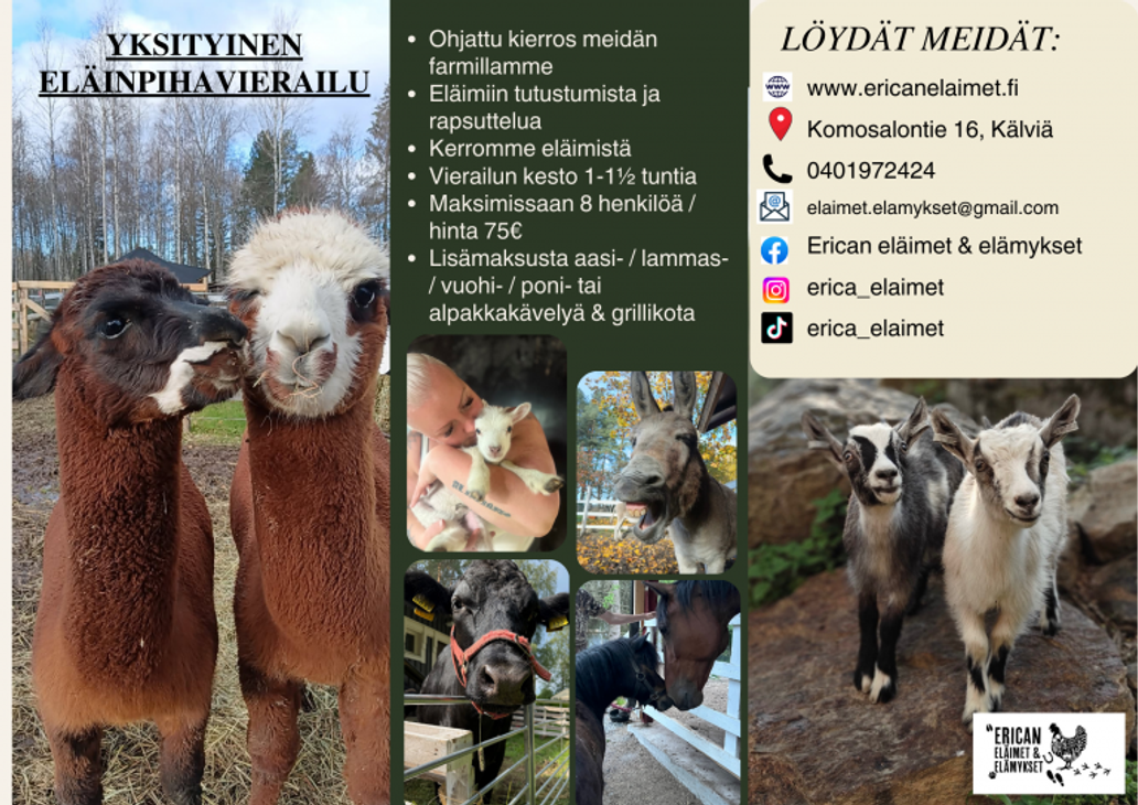 Meiltä on mahdollista varata oma ohjattu eläinhetki meidän ihanien eläinten kanssa ![]()