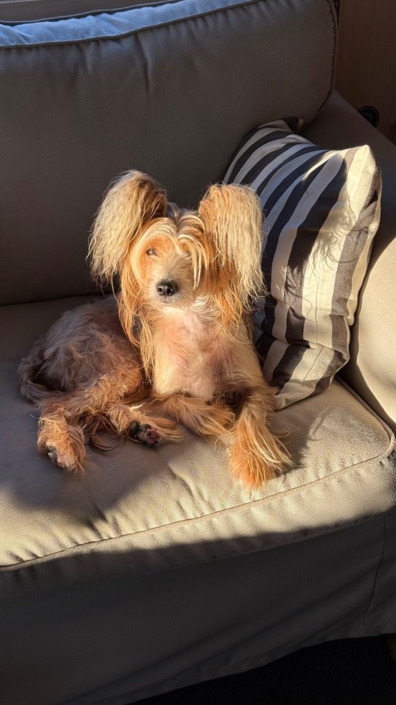 Kiinanharjakoira Pinky Twinky Överi Ihana eli Ihku on syntynyt huhtikuussa 2023. Tämä aivan nimensä veroinen sankari hurmaa jo pelkällä läsnäolollaan.