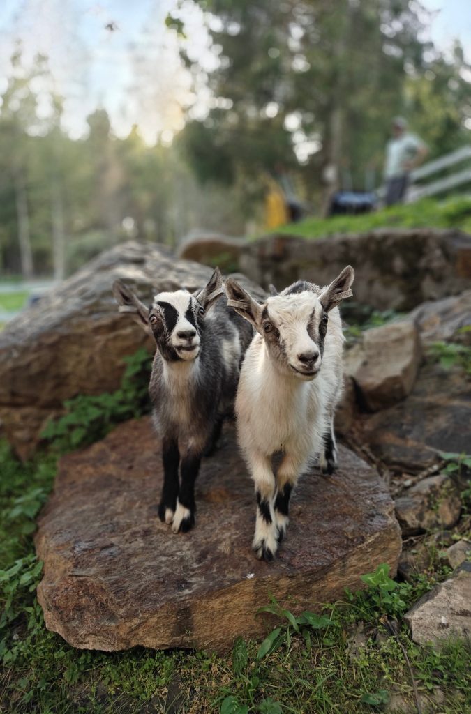 Victoria on Sastamalasta Peevon tilalta meille haettu. Victoria on syntynyt 3/2024 ja tuli meille kolmen viikon ikäisenä pienenä tyttönä. Victoria viihtyy erityisen hyvin lampaiden kanssa ja on rauhallisin kaveri tästä meidän vuohijoukosta.
